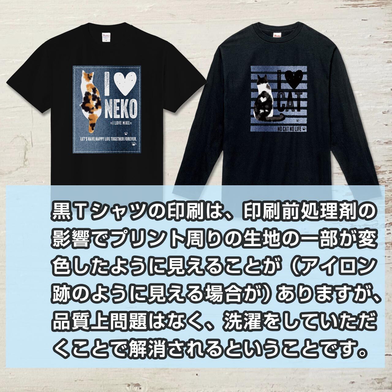 猫さんの後ろ姿を描いたイラストを配置したTシャツ(半袖/長袖)です。